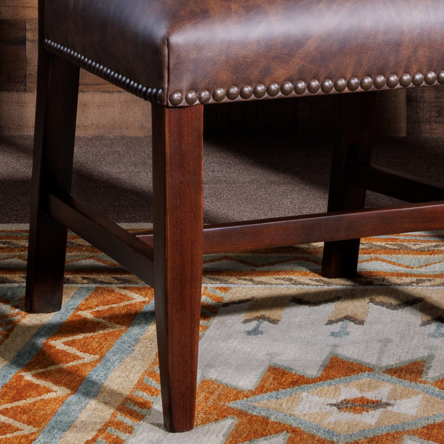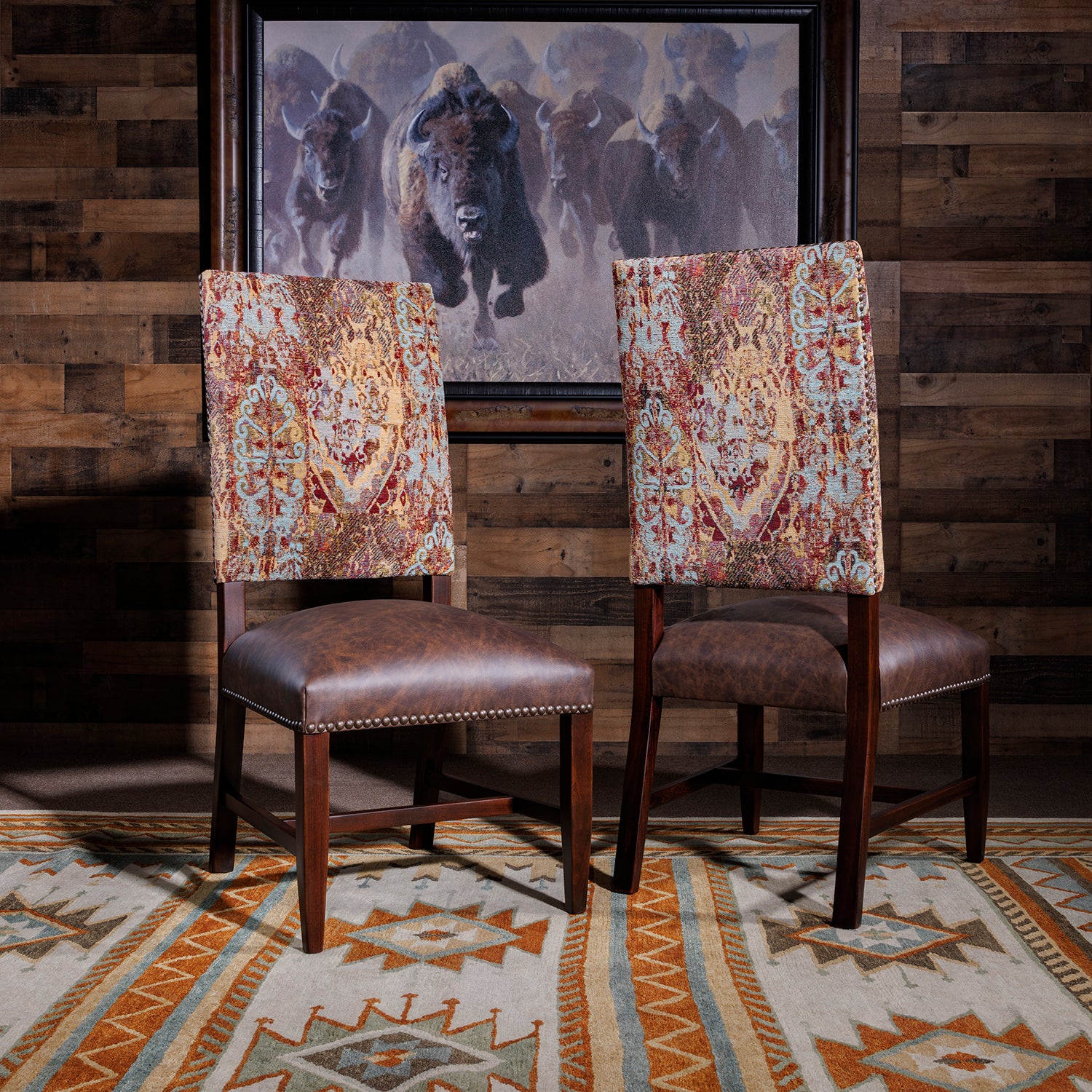CUSTOMIZATION: Discover a wide range of luxurious leather colors and accent pairings to customize your own classic Western dining chairs that truly showcases your individual style. Allow the skilled team at Hat Creek Interiors to help you craft a unique piece that is tailored to your sophisticated preferences.
