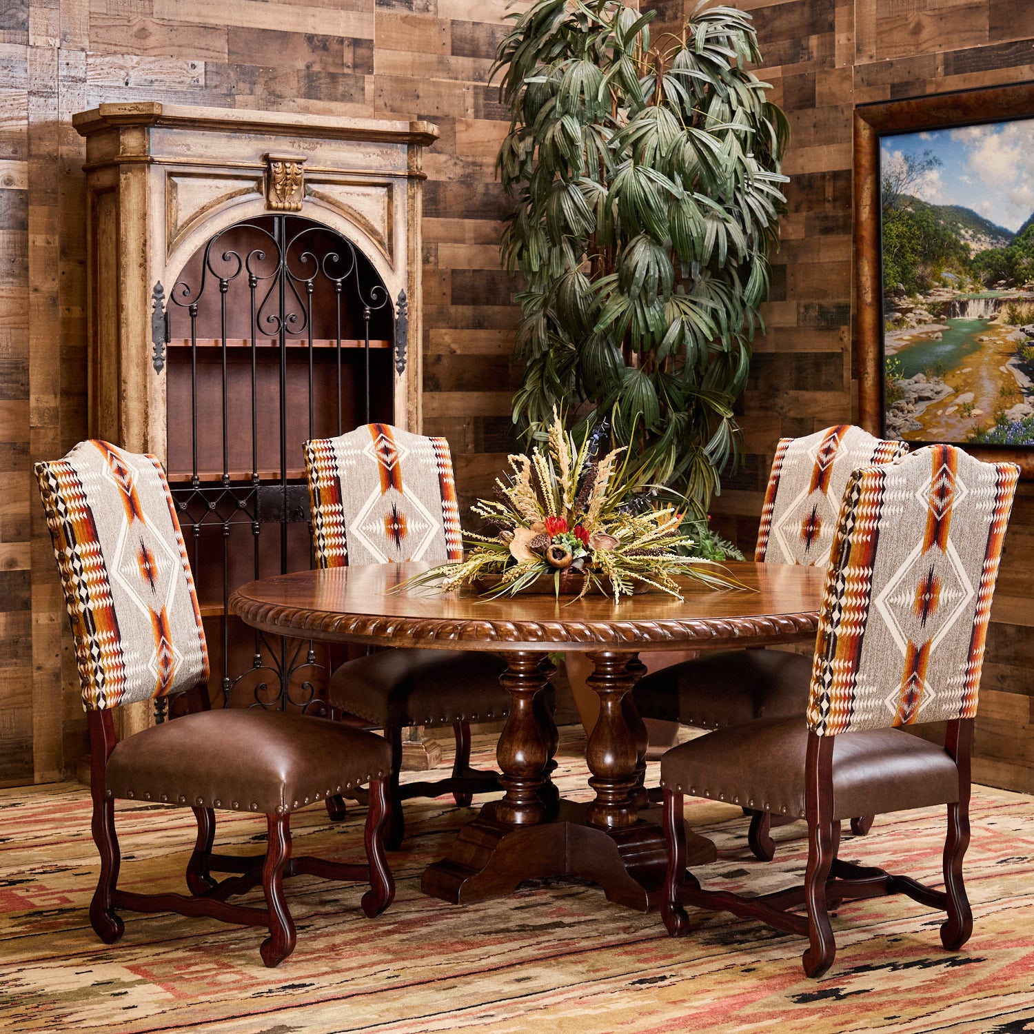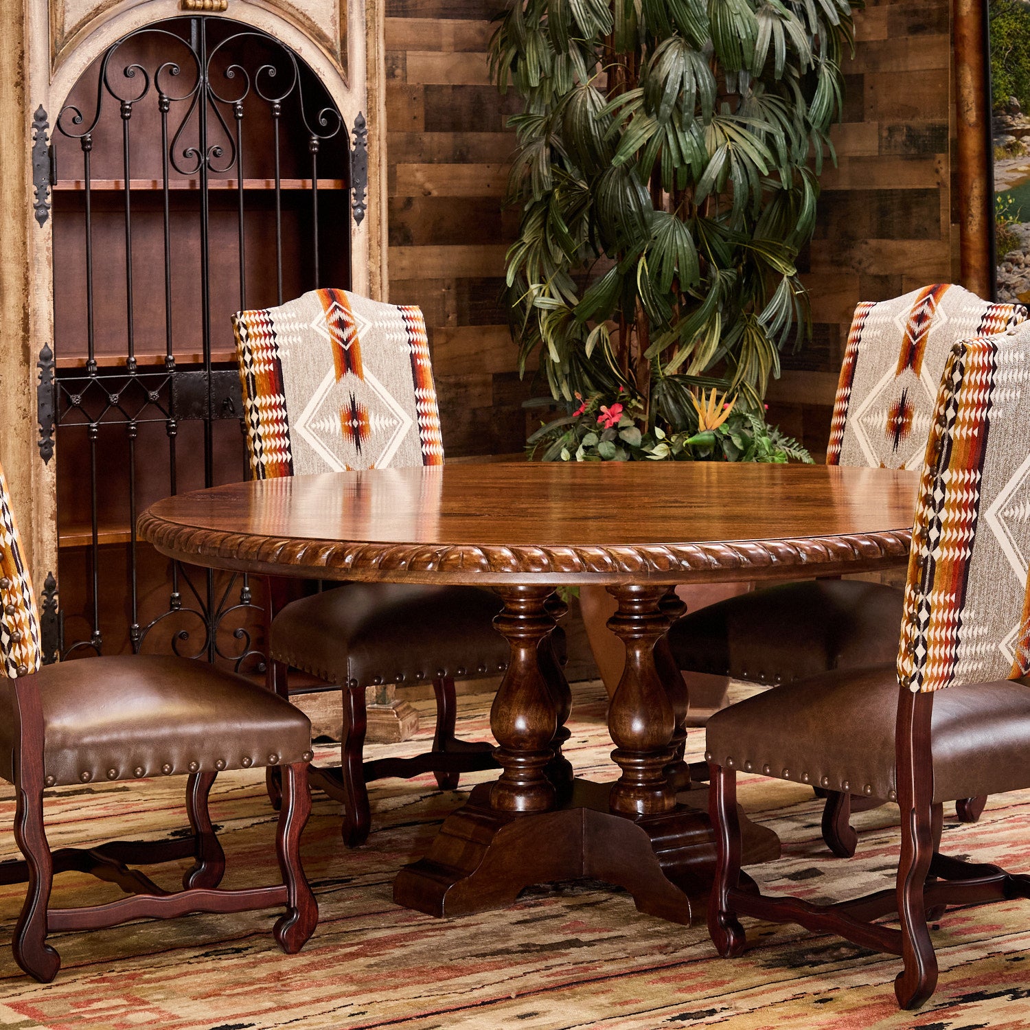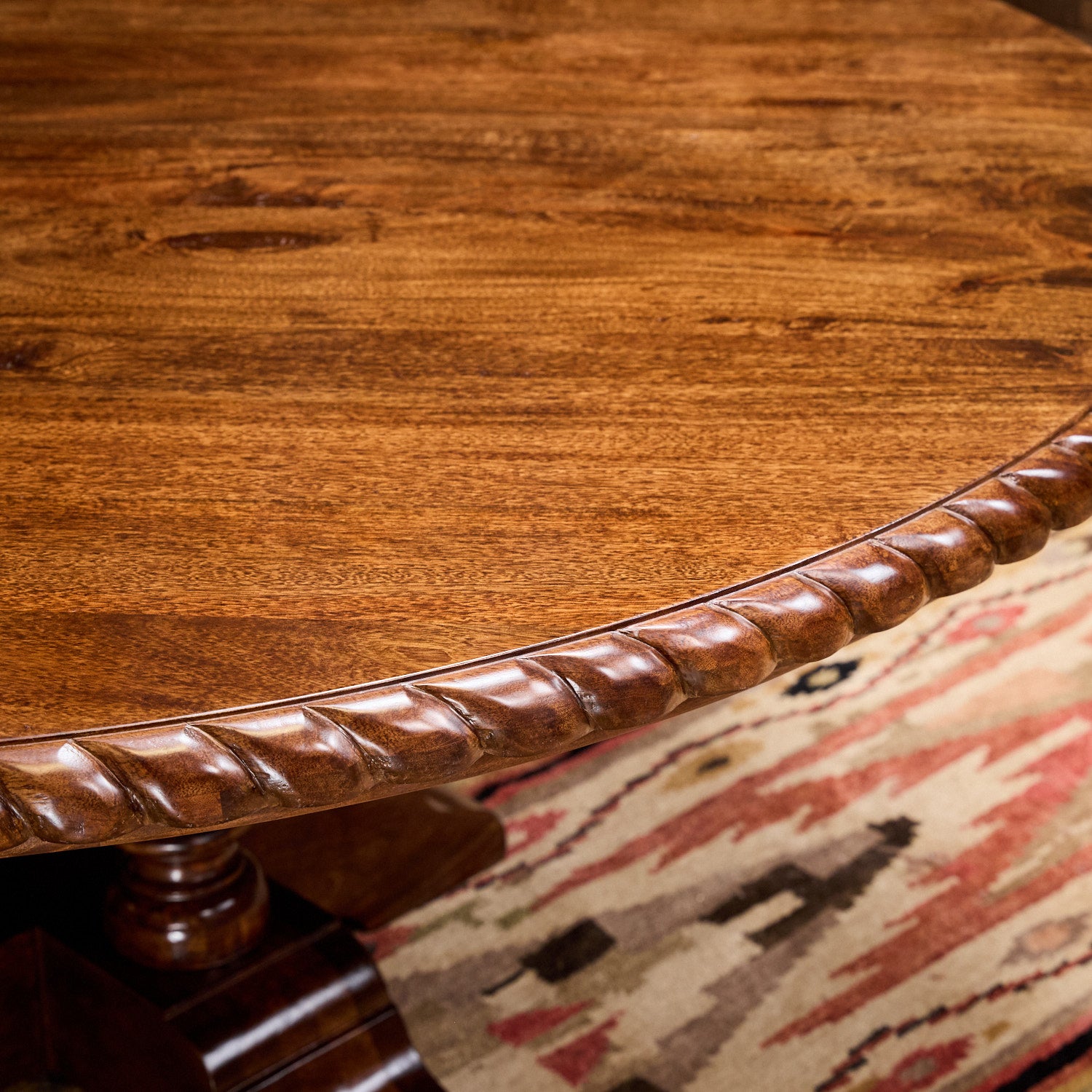 The Sienna Dining Table features beautifully carved rope edge and unique character throughout. This artisan crafted solid mango wood table has a centerpiece of marvelous texture and character. The elegantly finished surface show slight distressing, which aids in achieving a wonderful elegant rustic feel.