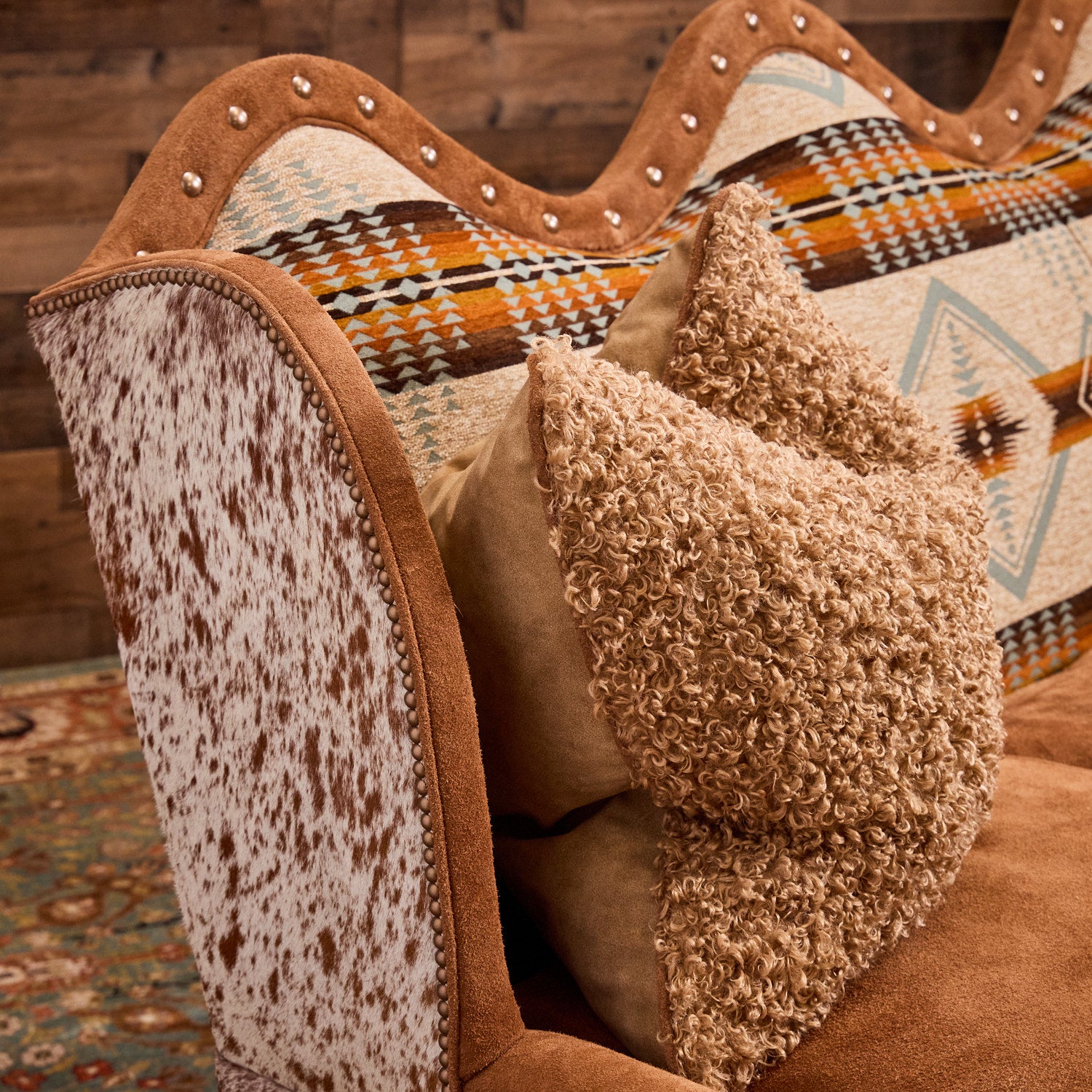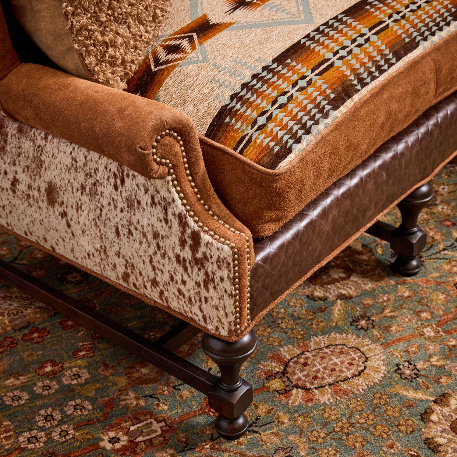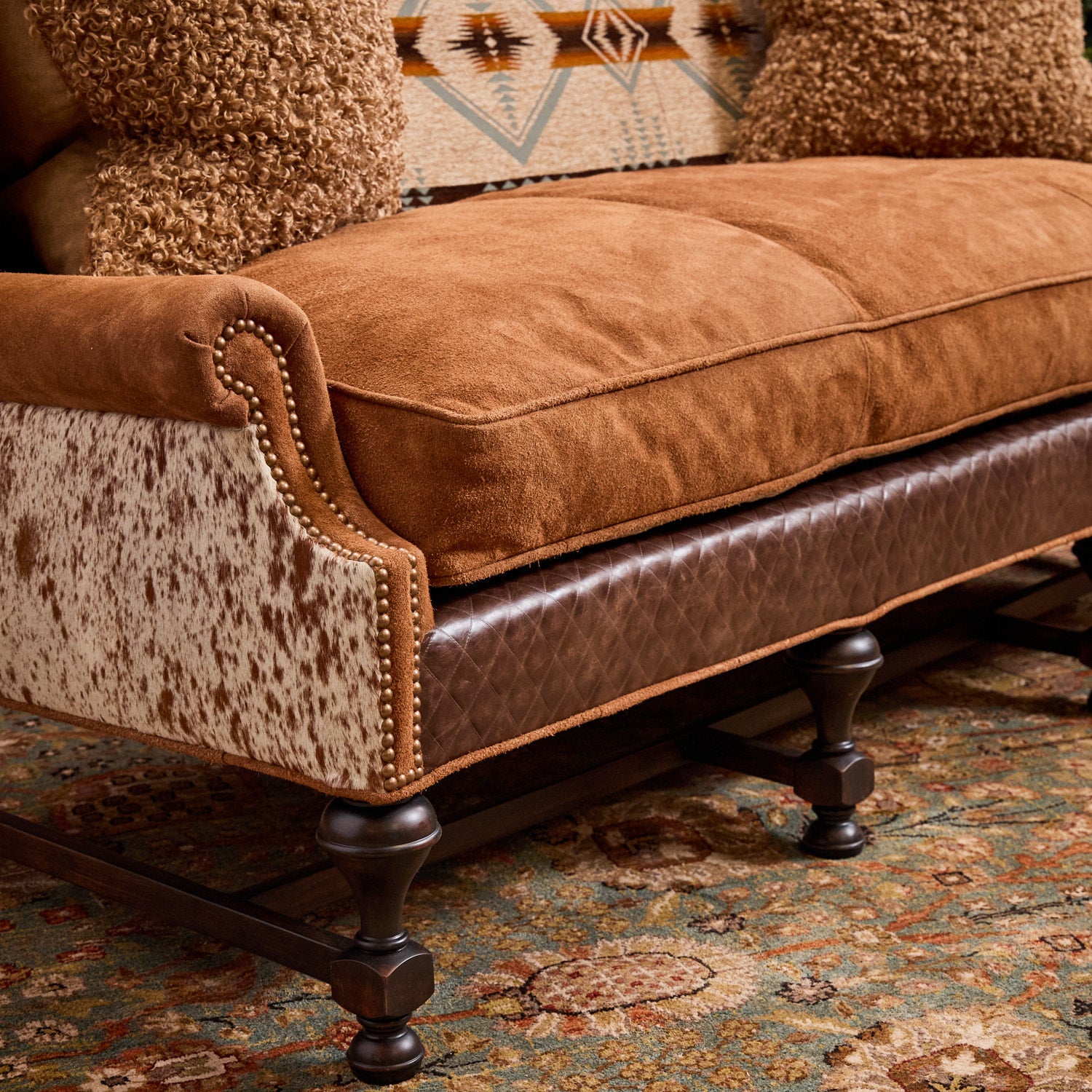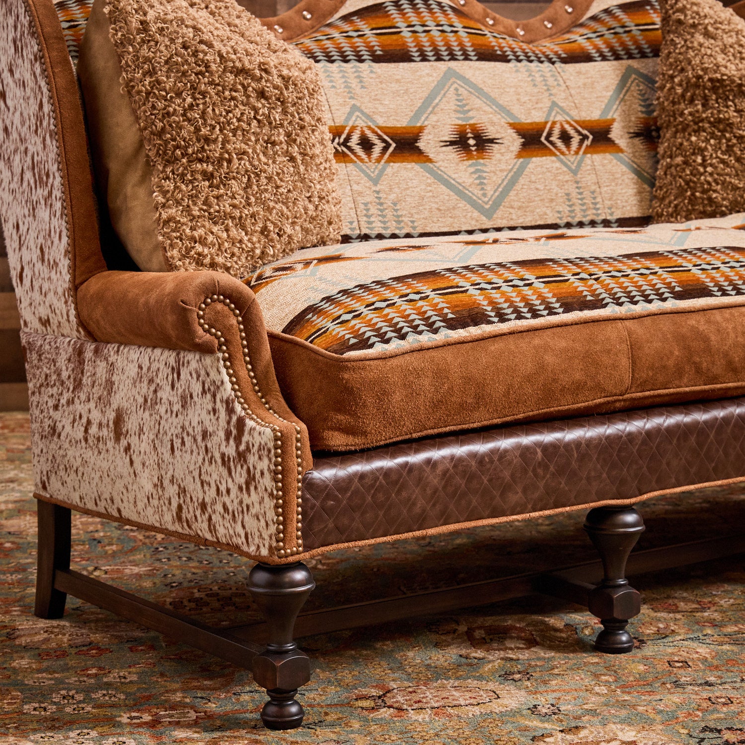 CUSTOMIZATION: Discover a wide range of luxurious leather colors and accent pairings to customize your own high-end Western luxury swivel chair that truly showcases your individual style. Allow the skilled team at Hat Creek Interiors to help you craft a unique piece that is tailored to your sophisticated preferences.