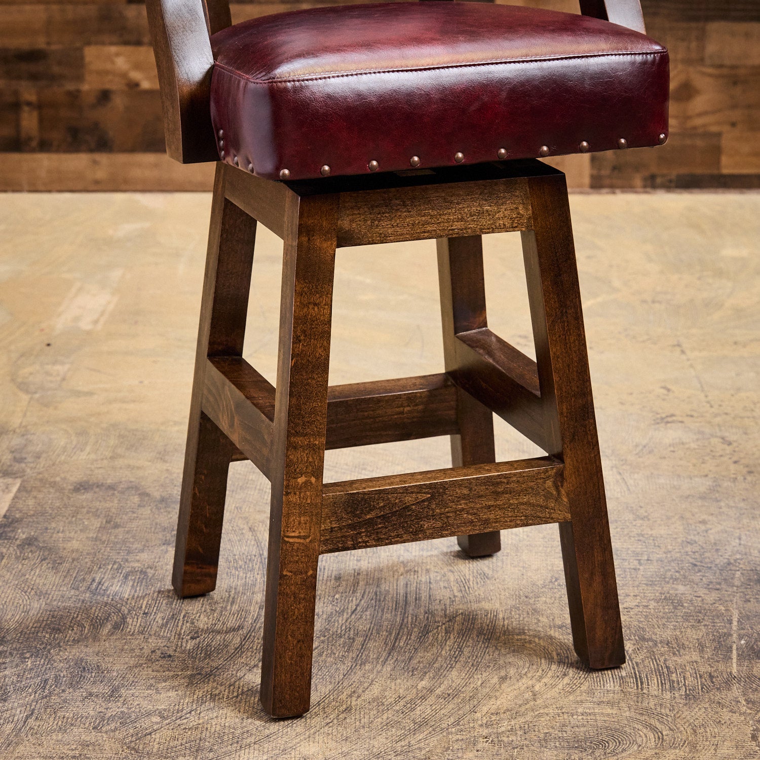 Elevate your bar or kitchen with the distinctive charm of Bonfire Wine Western Leather Bar Stools.  Meticulously hand-crafted right here in Texas USA, the rich burgundy top grain leather instantly brings warmth and authentic warm elegance to any space. The boot stitch accent on the backs offers a subtle touch of Western charm for all to enjoy.  Available in bar or counter heights, these premium stools feature genuine leather construction with solid wood frames built to last.