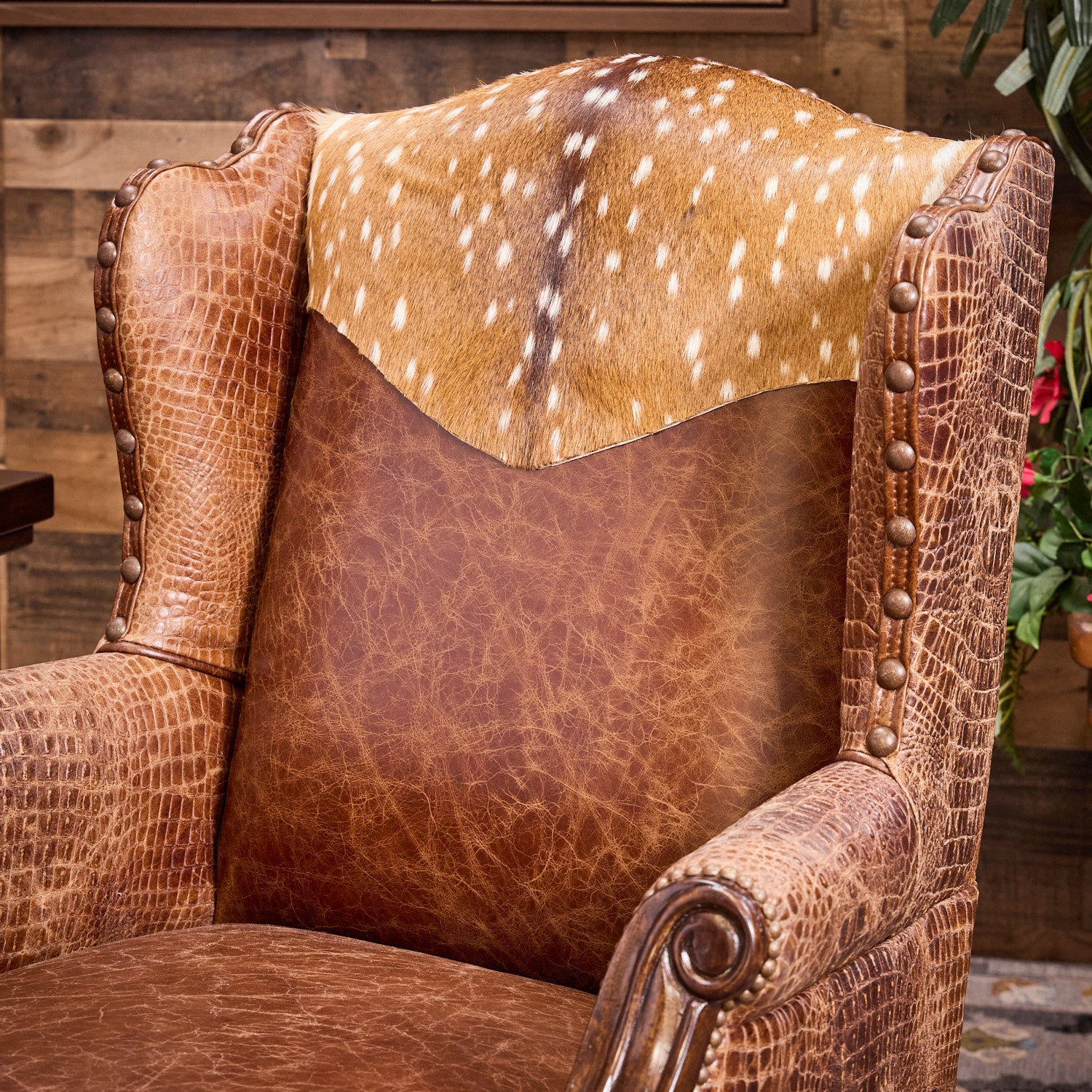 Experience genuine Western sophistication with the Espanola Axis Leather Office Chair. Crafted with warm leather, accented by embossed croc leather and authentic axis deer hide, it delivers a distinctive, masculine appeal. Designed for comfort, it features 360-degree swivel and hydraulic height adjustment, ideal for those long hours office hours. The chair’s finely hand-carved front wood trim and arm fronts add a unique touch, making it a striking centerpiece for any Western workspace.