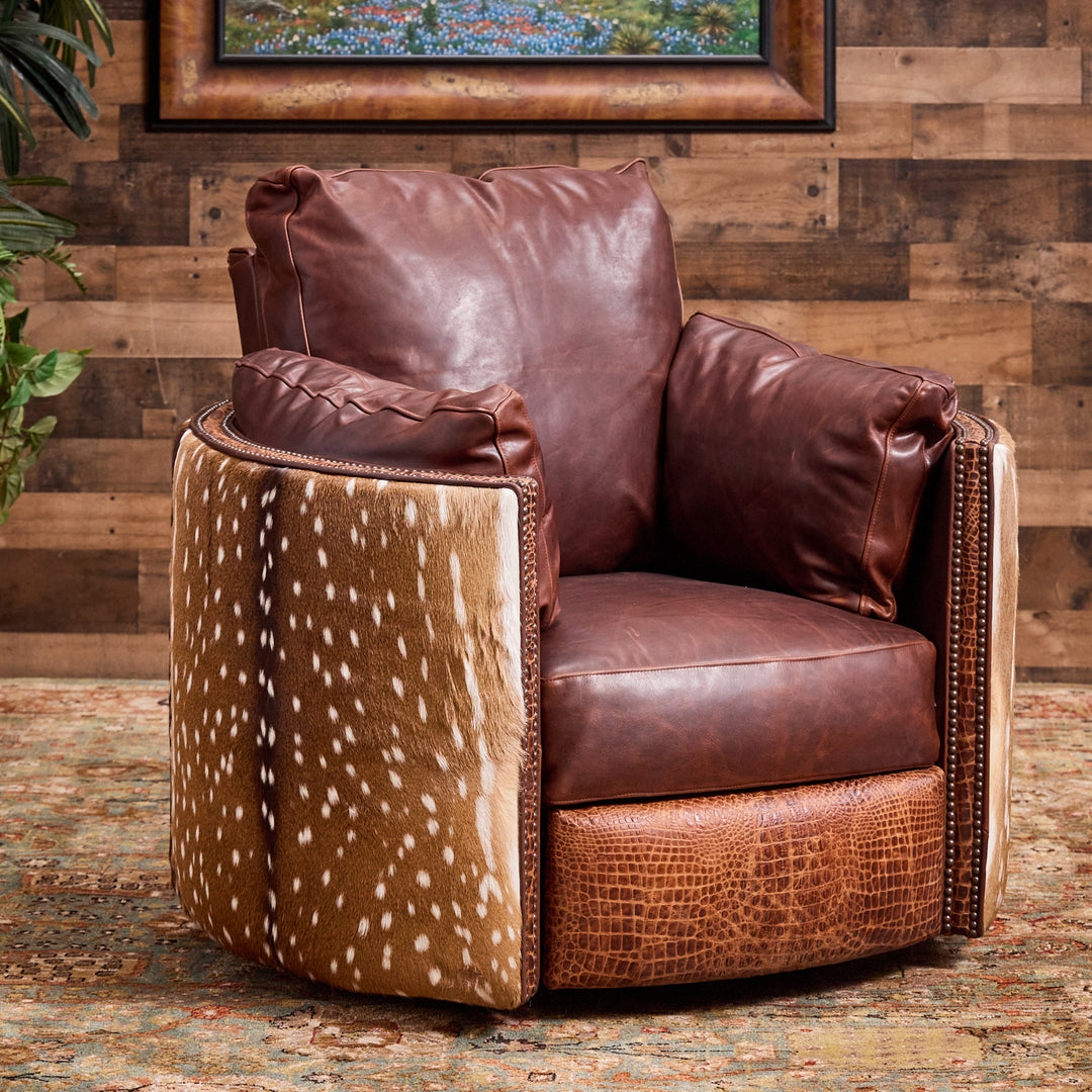 Springbok Leather Western Swivel Chair