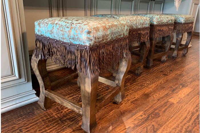 CUSTOMIZATION: Discover a wide range of luxurious leather colors and accent pairings to customize your own set of bar stools that truly showcases your individual style. Allow the skilled team at Hat Creek Interiors to help you craft a unique piece that is tailored to your sophisticated preferences.