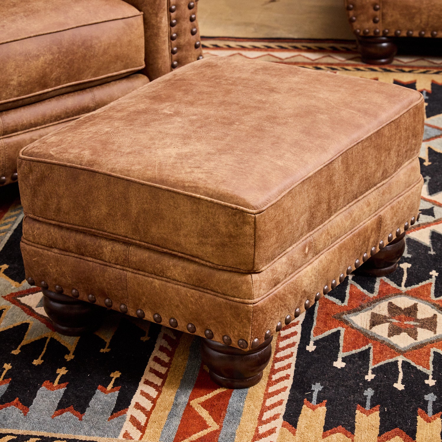 Sink into the ultra-soft comfort of the TEXAS-MADE Andrew Leather Sofa! A solid hardwood frame is covered in one of our top-grain leathers, which boasts a variety of warm tones throughout. The Rawhide Leather shown is sometimes referred to as "bomber jacket leather" or "distressed leather" with a very supple, soft feel that will provide rich comfort for your entire family. Each piece is topped off with antique nailhead trim, providing a subtle rustic touch that is versatile and perfect for any style home or office. Matching chair, ottoman and loveseat also available.