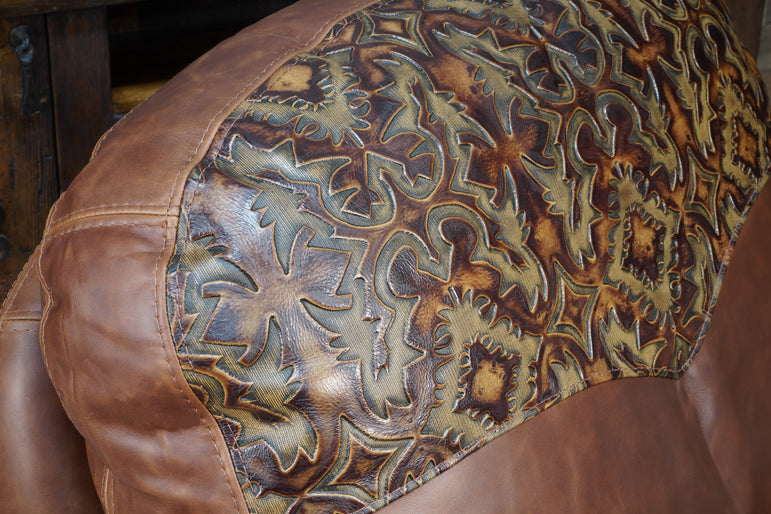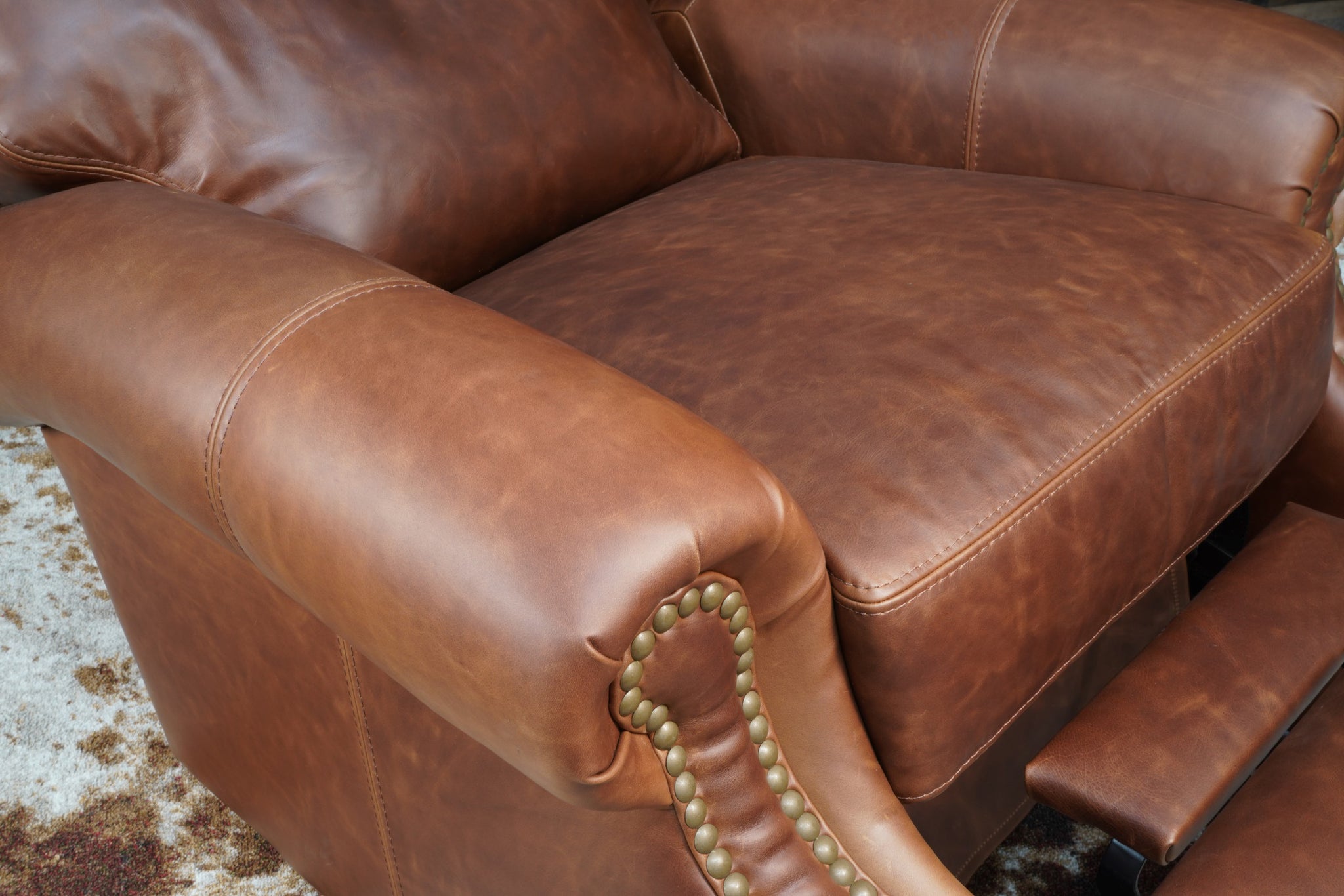 CUSTOMIZATION: Discover a wide range of luxurious leather colors and accent pairings to customize your own high-end Western luxury recliner that truly showcases your individual style. Allow the skilled team at Hat Creek Interiors to help you craft a unique piece that is tailored to your sophisticated preferences.