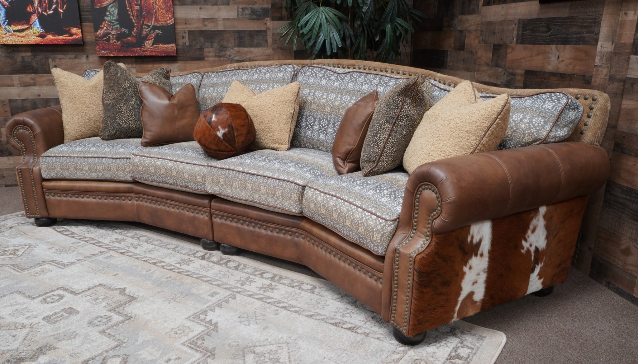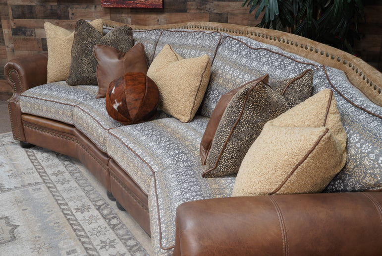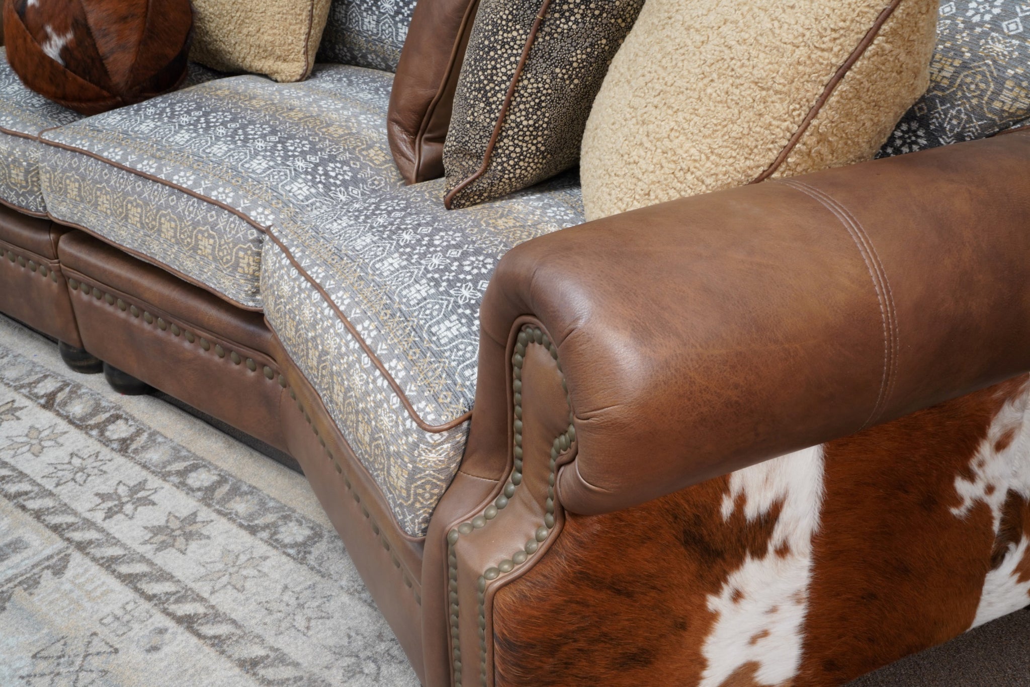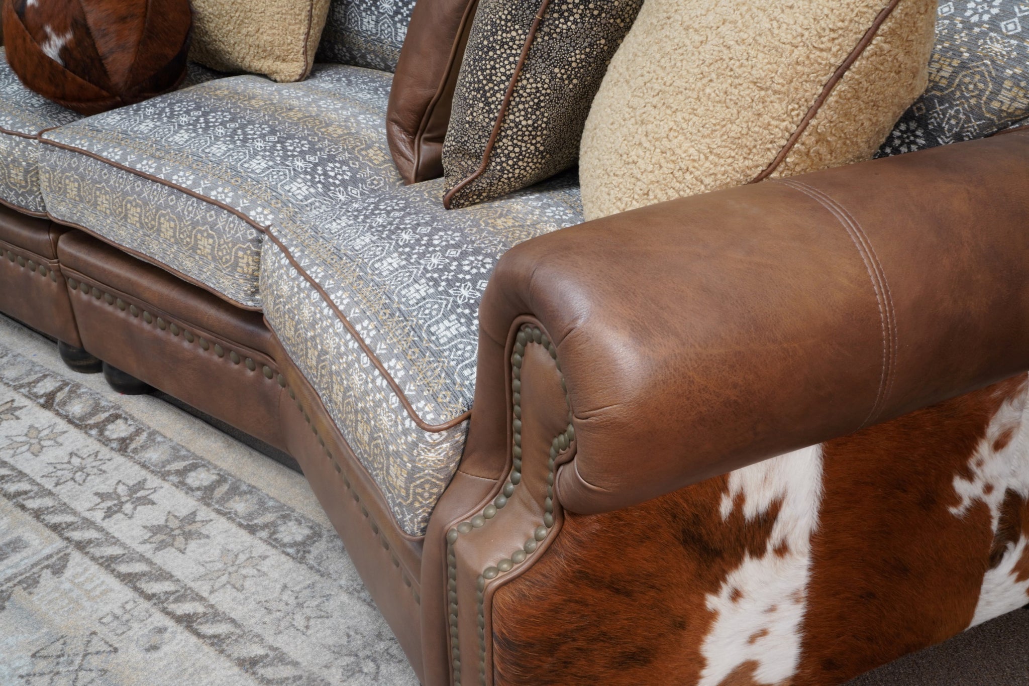 CUSTOMIZATION: Discover a wide range of luxurious leather colors and accent pairings to customize your own high-end Western luxury sectional sofa that truly showcases your individual style. Allow the skilled team at Hat Creek Interiors to help you craft a unique piece that is tailored to your sophisticated preferences.
