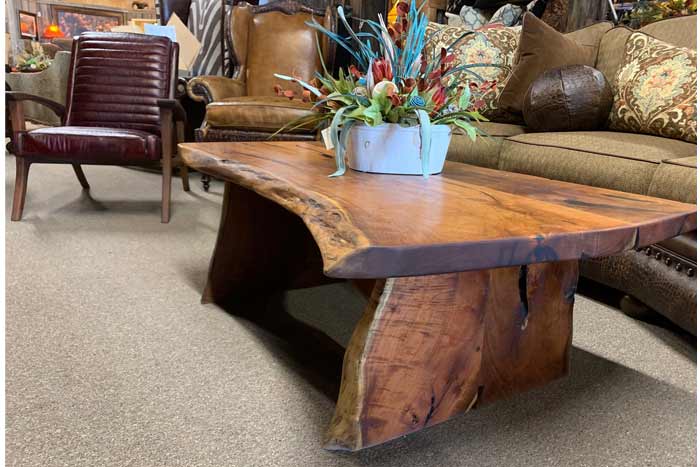 Showcase a love of nature with the Pecos Mesquite Coffee Table! Made from solid mesquite wood, this is the perfect coffee table for any living or family room looking for unique style. The solid mesquite wood table boasts a natural/live edge and a mesquite slab base. With the wood's character and coloring intricacies, the discoveries are endless!