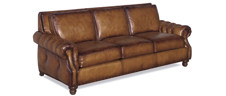 Hand crafted right here in the USA, the London Leather Sofa is wrapped in beautiful hand-antiqued leather, which provides a truly elegant that will be a beautiful addition to any style home or office. The hand-antiquing process provides light and dark tones throughout that create a rich, unique look that you don't see just anywhere. Not a sofa that you will find in your local traditional furniture store!